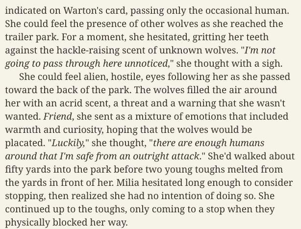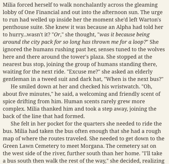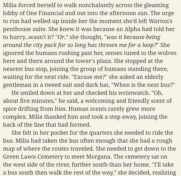 The List is composed of twelve wolves who, like me, had been born without a pack. I owed them a favor and if I could not help them personally, I would help someone else in their stead. The first was Morgana Feralclaw. Feralclaw? Sounded more like a Cat than a Wolf, but who was I to judge. I will say though, that if all the names were as hard to repay as Morgana, I wanted them to count double. Let me tell you the story of the First Name and you will see what I mean.